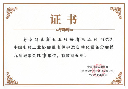 南京因泰萊當選為中國電器工業(yè)協(xié)會繼電保護及自動化設備分會第九屆理事會理事單位